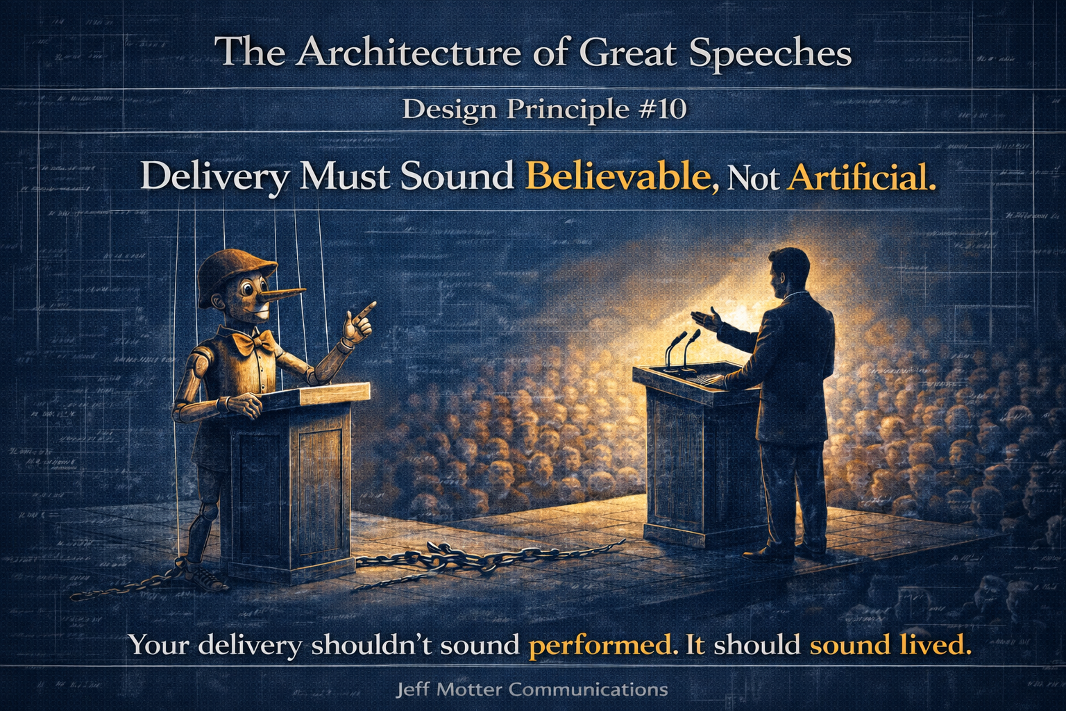 Delivery isn’t decoration. It’s the vehicle that carries the idea. It can’t be manufactured. It must flow out of you naturally. Your gestures flow from your voice, not act as a replacement for it.